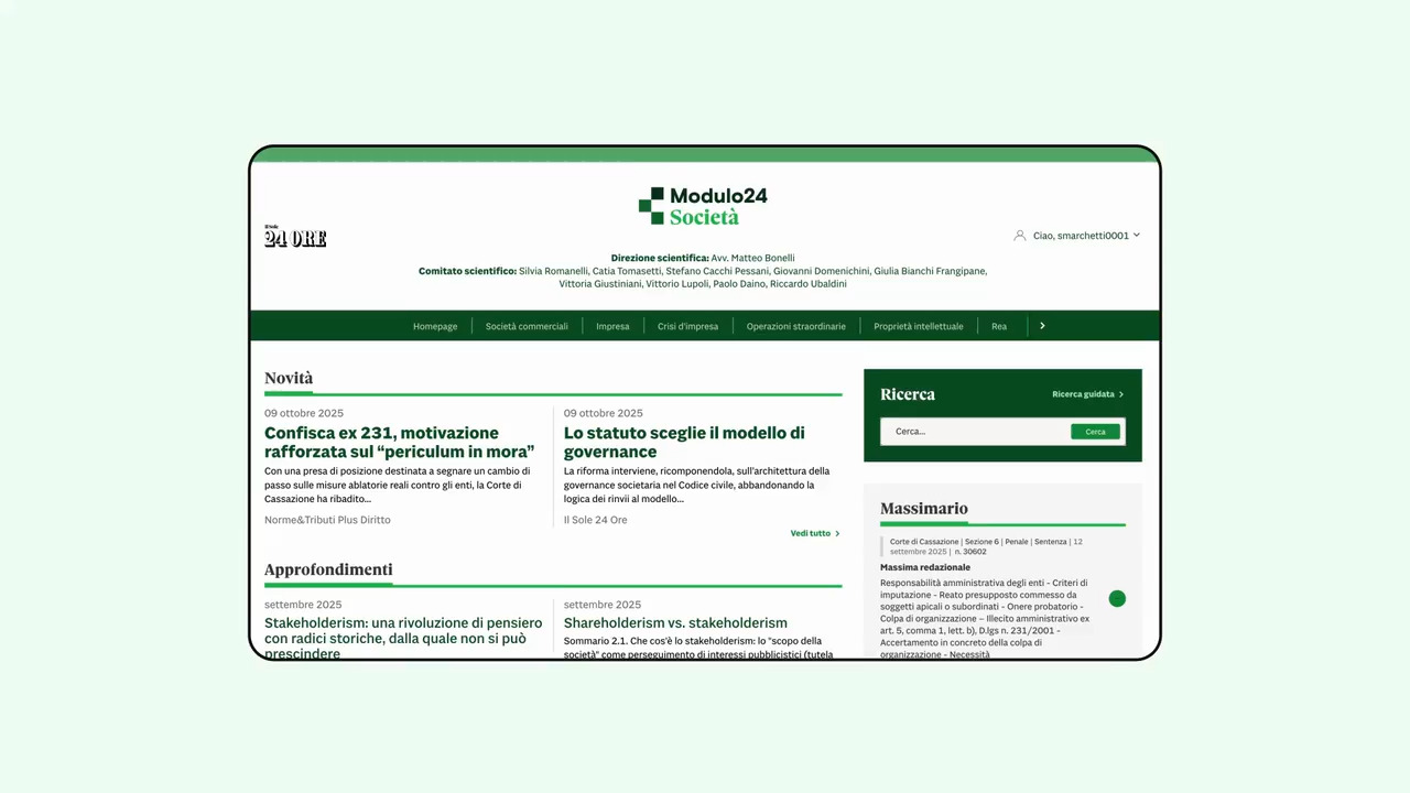 Tutta la conoscenza degli Esperti del Sole 24 Ore a garanzia della qualità dei contenuti. Direzione scientifica: Avv. Matteo Bonelli , Partner dello studio legale BonelliErede, Country Partner per la Russia e l’Europa dell’Est, team leader del Focus Team Aziende di Famiglia & PMI e membro del Focus Team Real Estate Comitato scientifico: Avv. Silvia Romanelli, Avv. Stefano Cacchi Pessani, Avv. Giovanni Domenichini, Avv. Giulia Bianche Frangipane, Avv. Vittoria Giustiniani, Avv. Vittorio Lupoli, Avv. Apolo Daino, Avv. Riccardo Ubaldini.