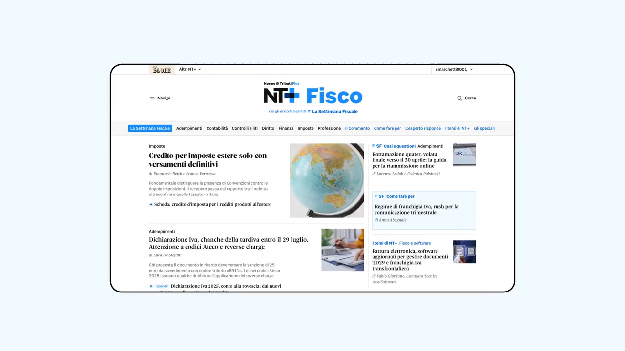 - rubriche in tema di Adempimenti, Contabilità, Controlli e liti, Diritto, Finanza, Imposte.